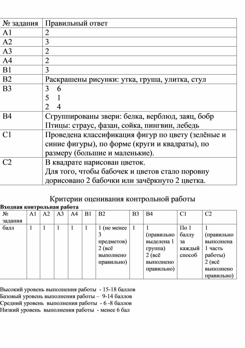 Критерии оценивания контрольной работы