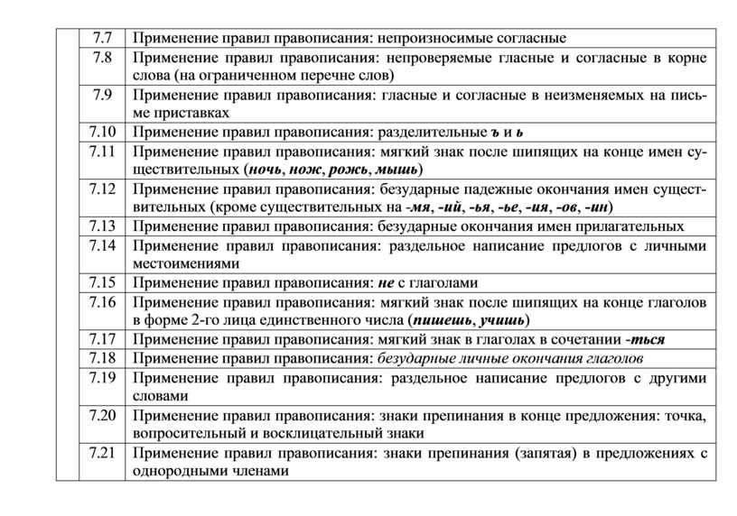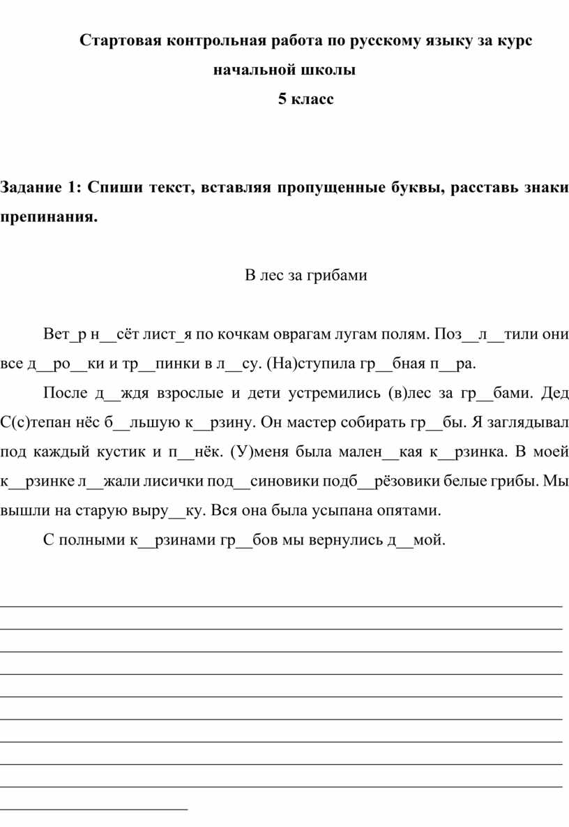 Стартовая контрольная работа по русскому языку за курс начальной школы