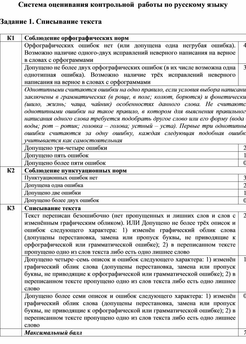 Однотипными считаются ошибки на одно правило, если условия выбора написания заключены в грамматических (в роще, в поле; колют, борются) и фонетических (шило, жизнь; чаща, чайник) особенностях данного слова. Не считаются однотипными ошибки на такое правило, в котором для выяснения правильного написания одного слова требуется подобрать другое слово или его форму (вода – воды; рот – ротик; головка – голова; устный – уста). Первые три однотипные ошибки считаются за одну ошибку, каждая следующая подобная ошибка учитывается как самостоятельная |