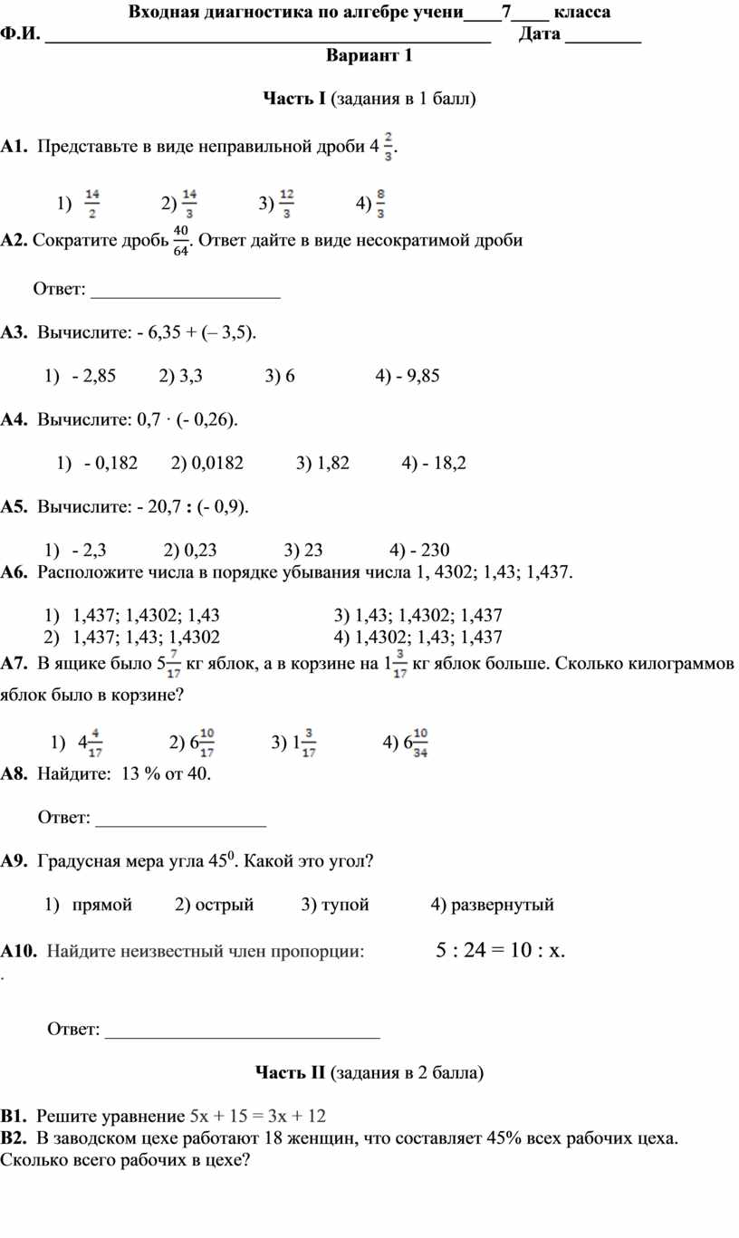 В2. В заводском цехе работают 18 женщин, что составляет 45% всех рабочих цеха. Сколько всего рабочих в цехе?