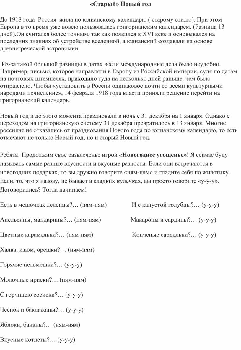 «Старый» Новый год