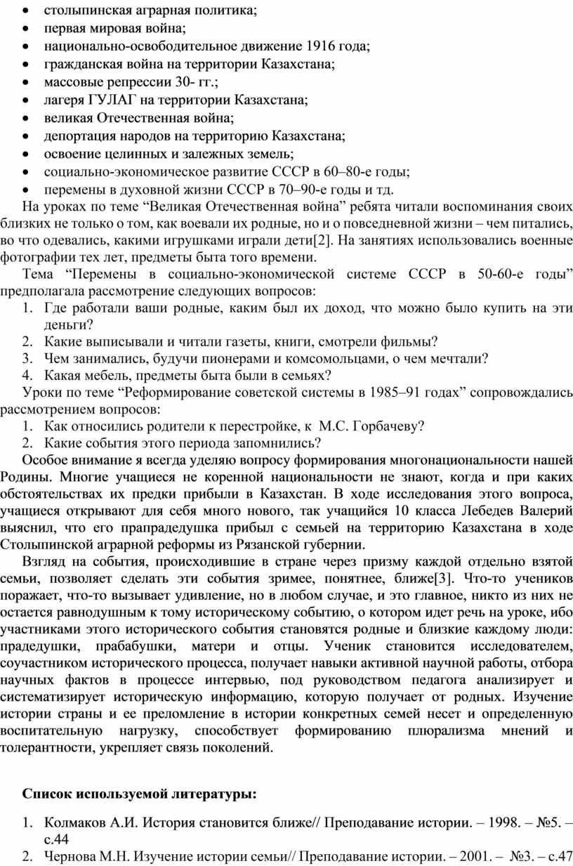 2. Чернова М.Н. Изучение истории семьи// Преподавание истории. – 2001. – №3. – с.47