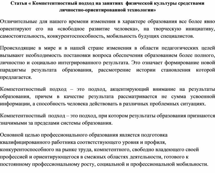 Статья « Компетентностный подход на занятиях физической культуры средствами личностно-ориентированной технологии»