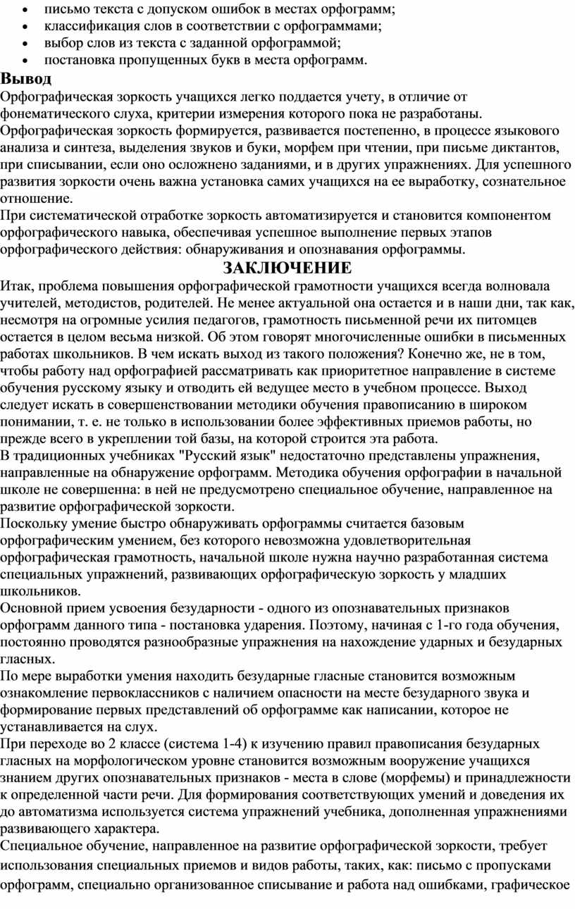 Систематическая работа, основанная на использовании эффективных приемов и средств формирования орфографической зоркости, обязательно даст положительные результаты.