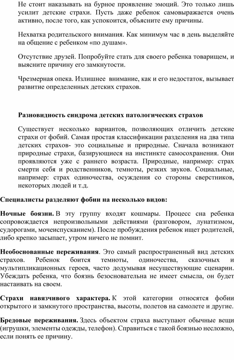 Разновидность синдрома детских патологических страхов