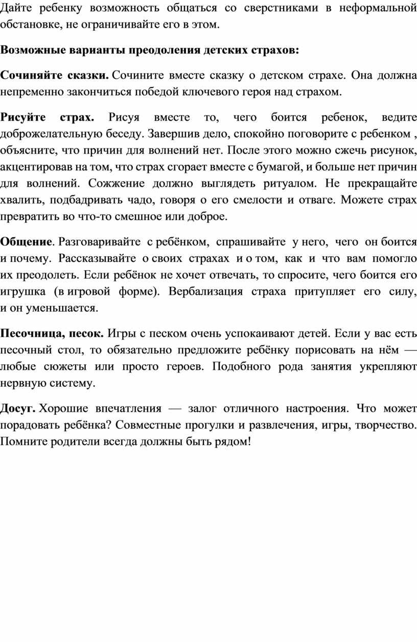 Возможные варианты преодоления детских страхов: