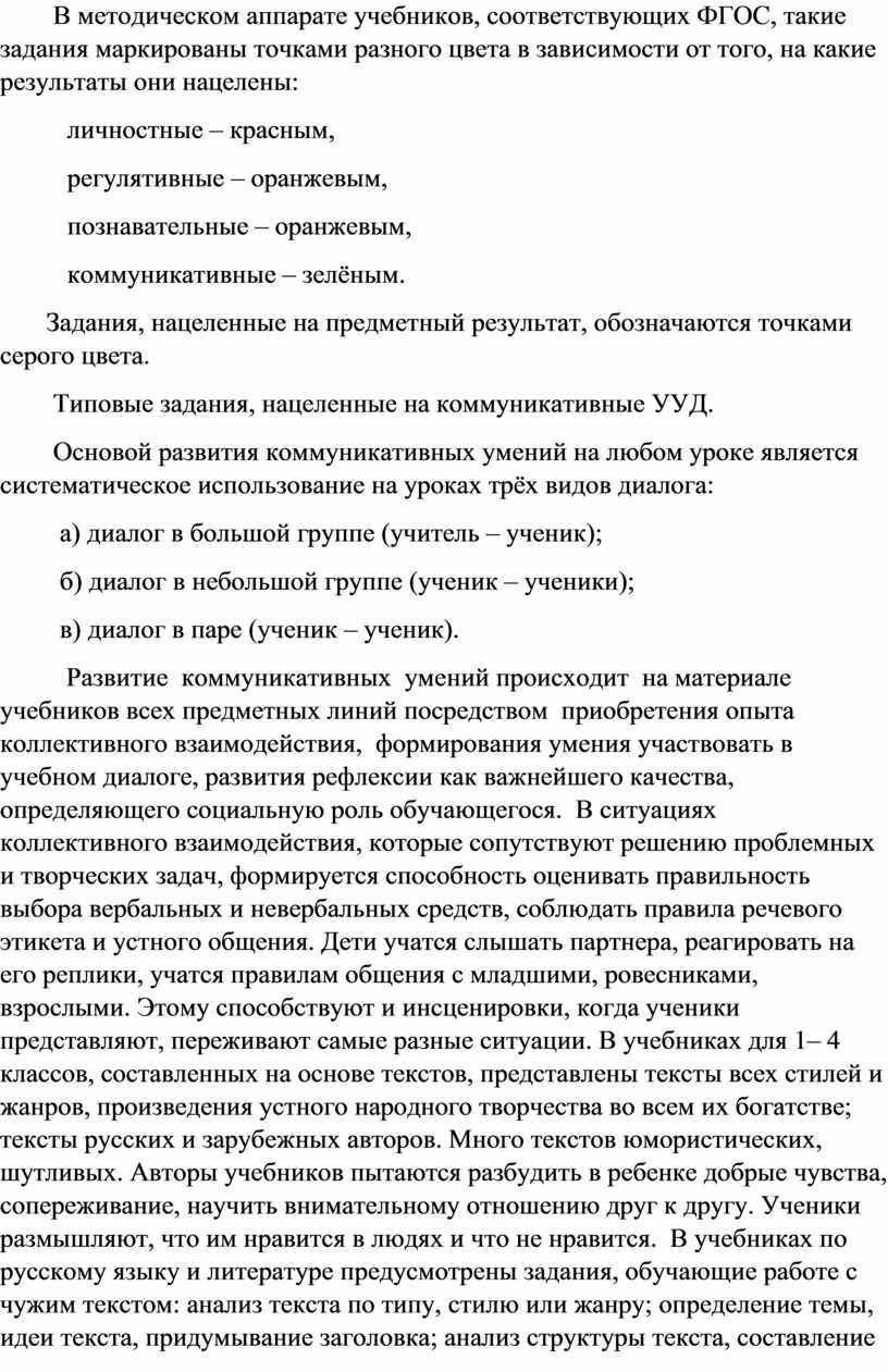 В методическом аппарате учебников, соответствующих ФГОС, такие задания маркированы точками разного цвета в зависимости от того, на какие результаты они нацелены: