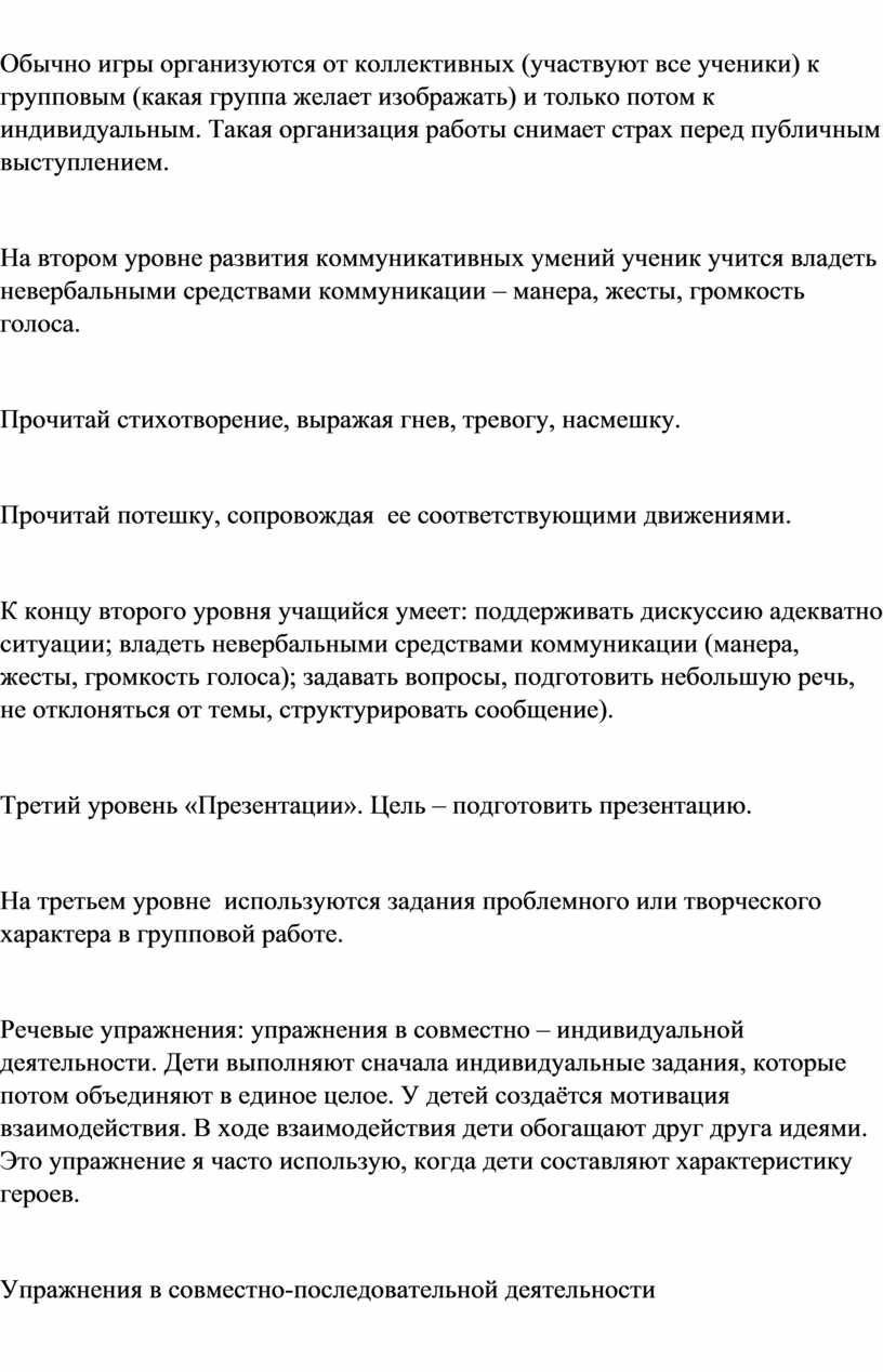 На втором уровне развития коммуникативных умений ученик учится владеть невербальными средствами коммуникации – манера, жесты, громкость голоса.