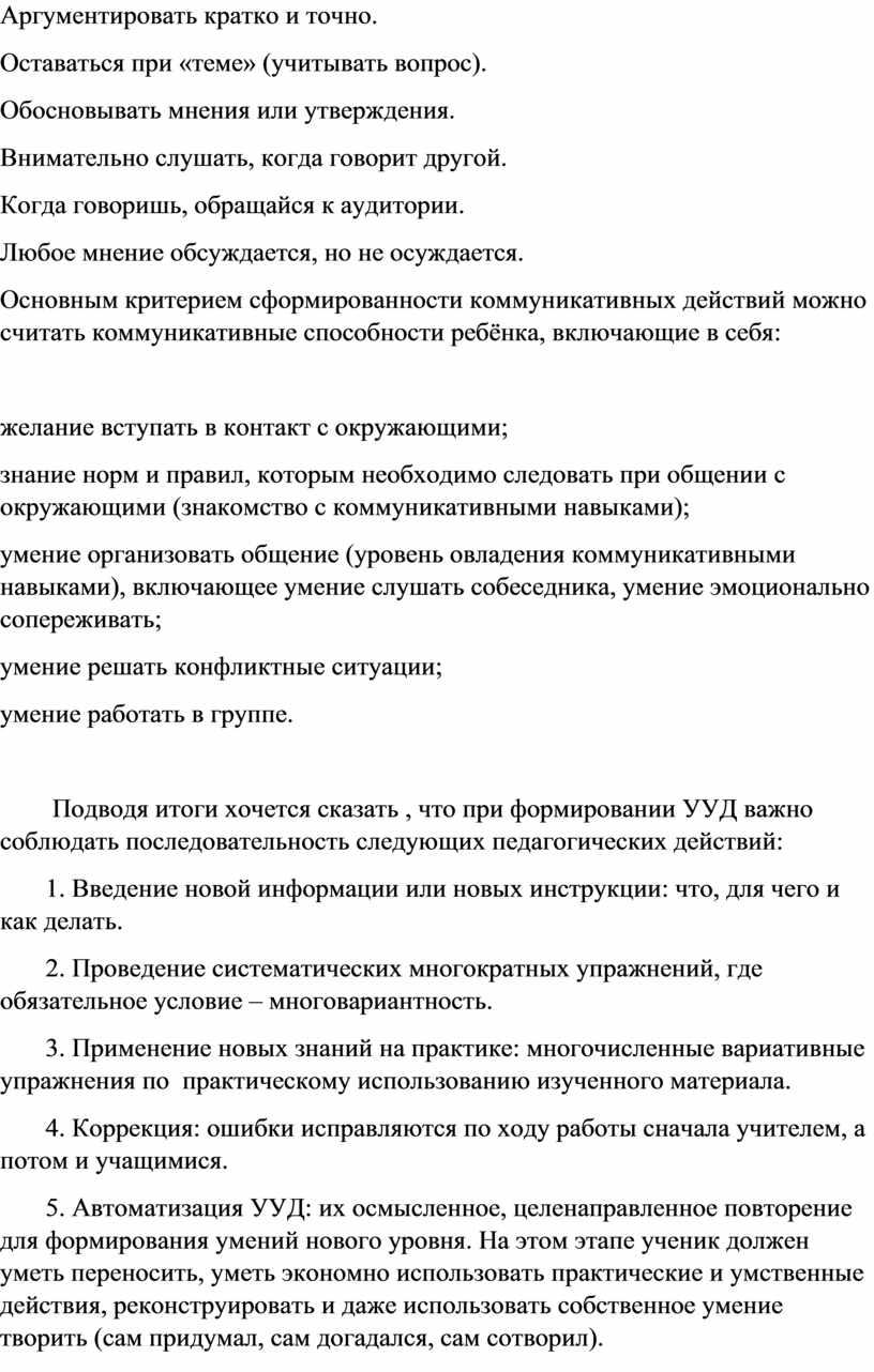 Подводя итоги хочется сказать , что при формировании УУД важно соблюдать последовательность следующих педагогических действий: