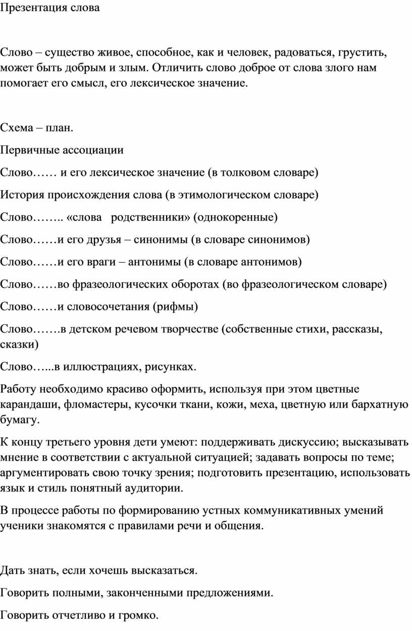 В процессе работы по формированию устных коммуникативных умений ученики знакомятся с правилами речи и общения.