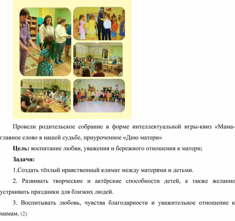 3. Воспитывать любовь, чувства благодарности и уважительное отношение к мамам. (2)
