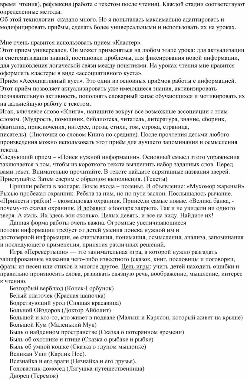 Об этой технологии сказано много. Но я попыталась максимально адаптировать и модифицировать приёмы, сделать более универсальными и использовать их на уроках.