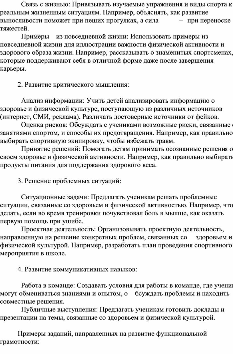 Функциональная грамотность на уроках физической культуры: От навыков к жизни!