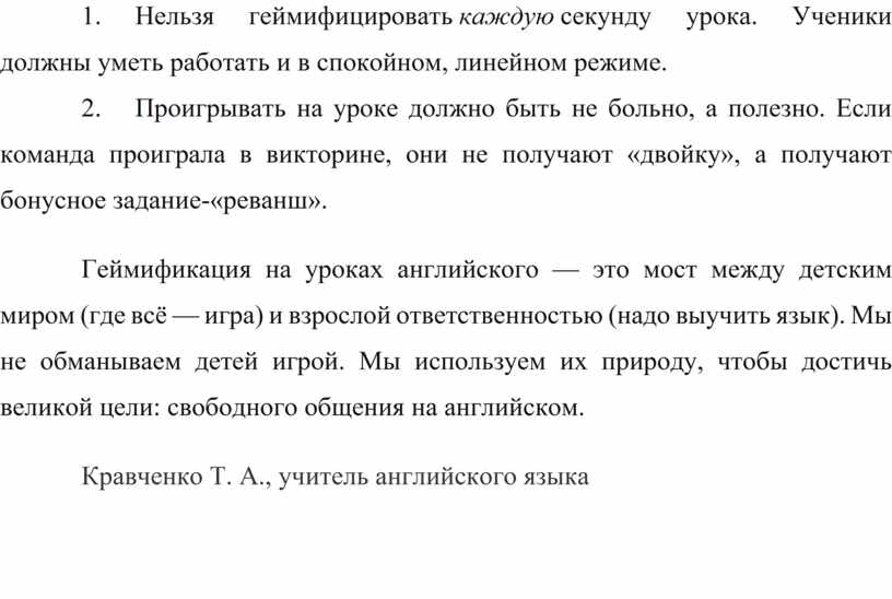 2. Нельзя геймифицировать каждую секунду урока. Ученики должны уметь работать и в спокойном, линейном режиме.