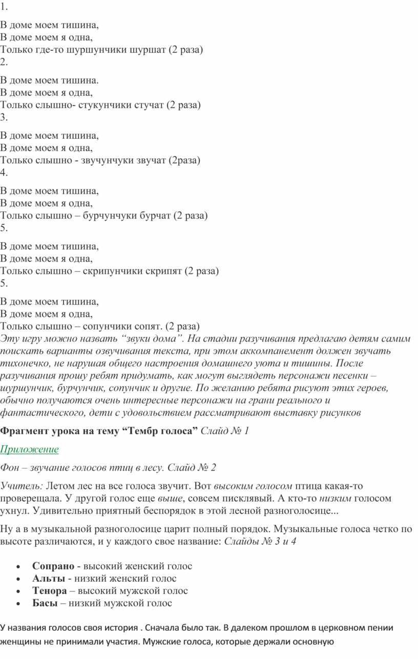 Фрагмент урока на тему “Тембр голоса” Слайд № 1