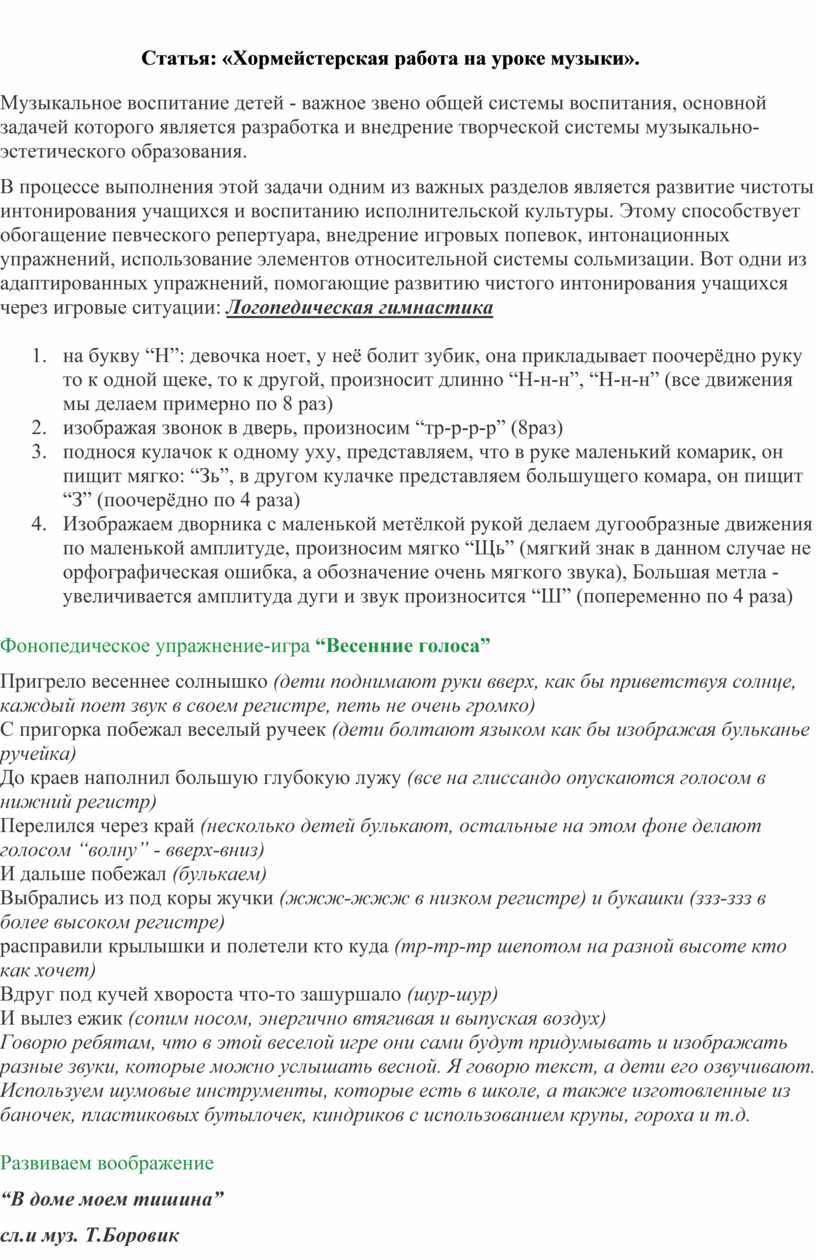 Статья: «Хормейстерская работа на уроке музыки».