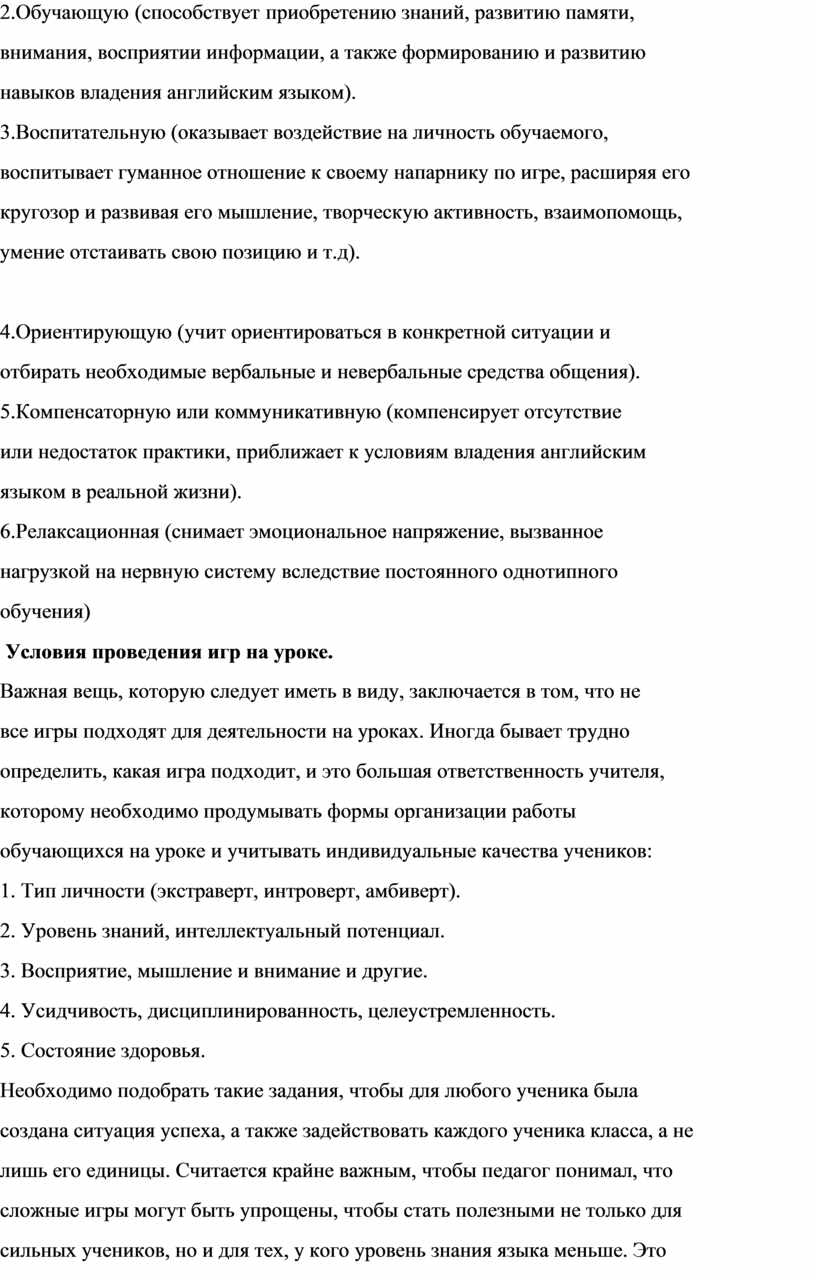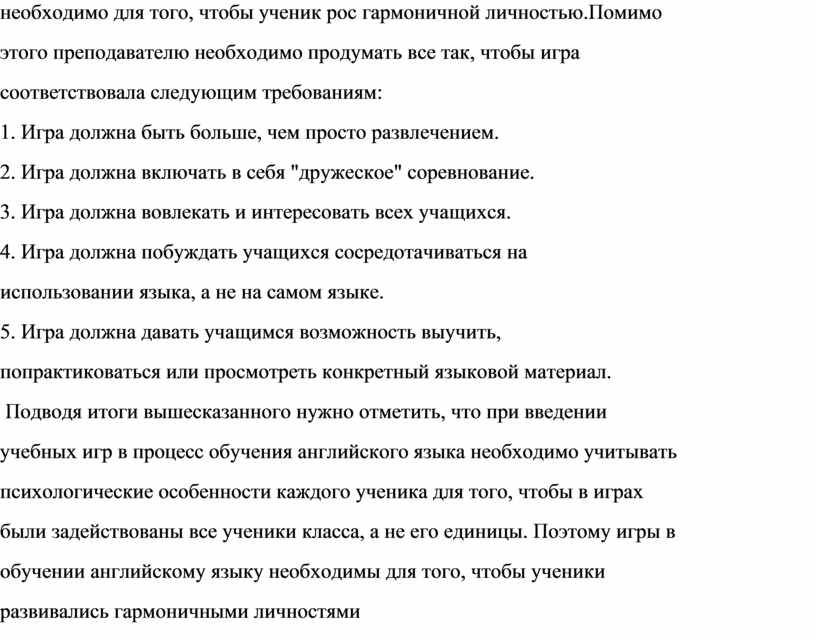 учебных игр в процесс обучения английского языка необходимо учитывать