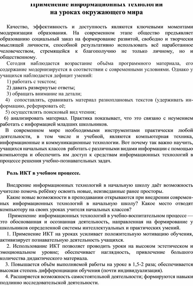 ИКТ и «Окружающий мир».
