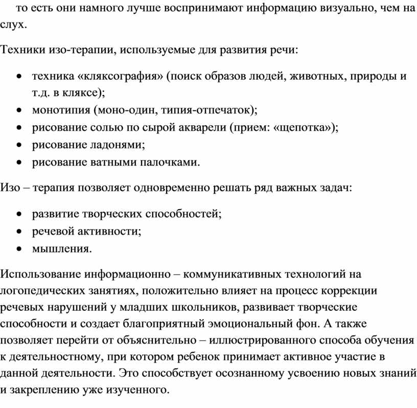 Для улучшения качества работы учителя-логопеда с младшими школьниками в работе регулярно необходимо использовать ИКТ, арт-терапевтические и игровые технологии, рассмотрим некоторые из них.