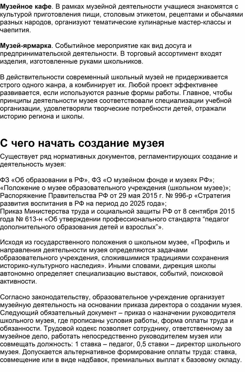 · «Положение о музее образовательного учреждения (школьном музее)»;