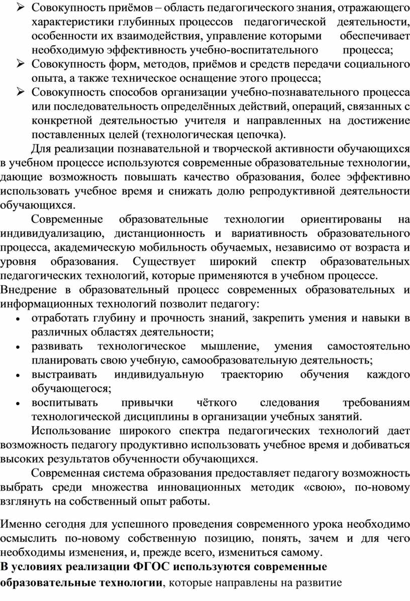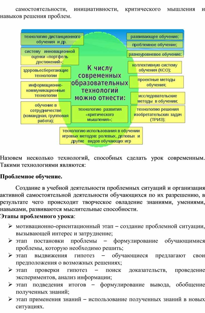 В условиях реализации ФГОС используются современные образовательные технологии, которые направлены на развитие самостоятельности, инициативности, критического мышления и навыков решения проблем.