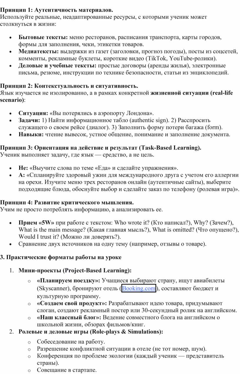 через аутентичные материалы, проектную деятельность и моделирование реальных