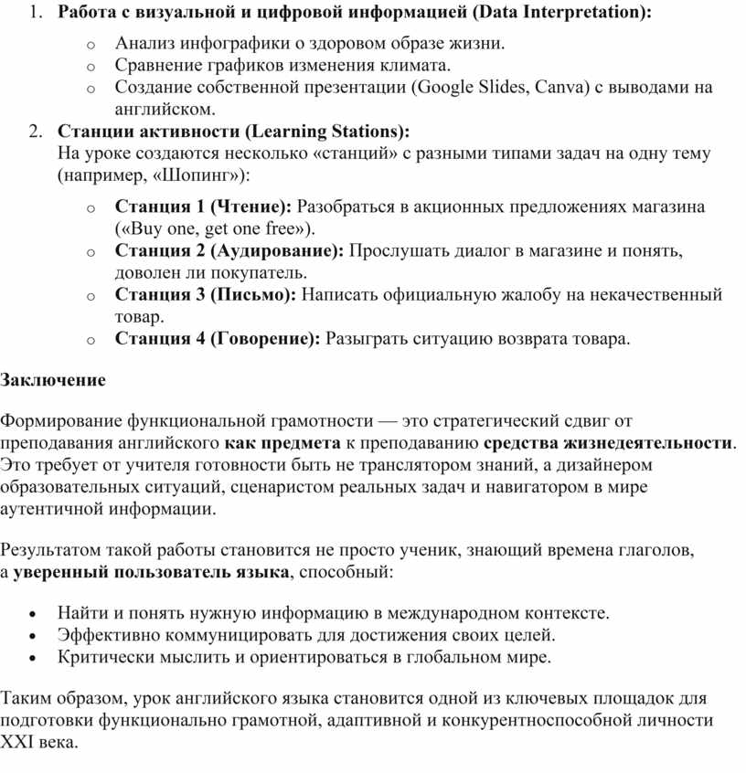 функциональной грамотности учащихся на уроках английского языка: от теории к
