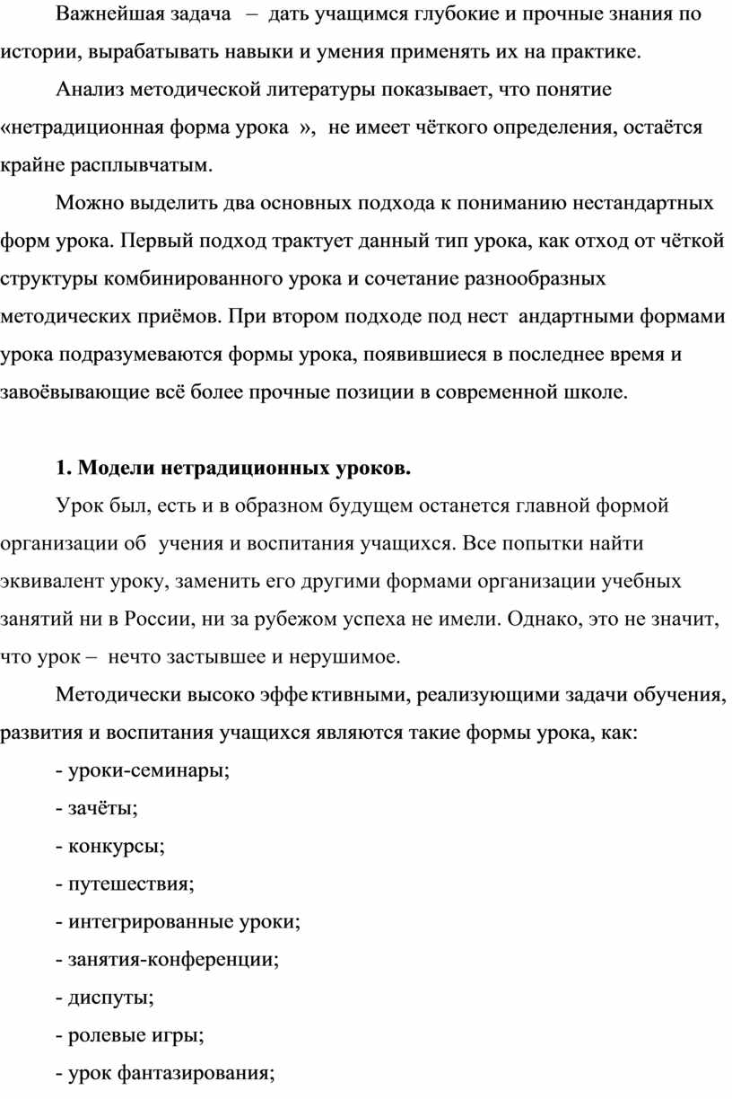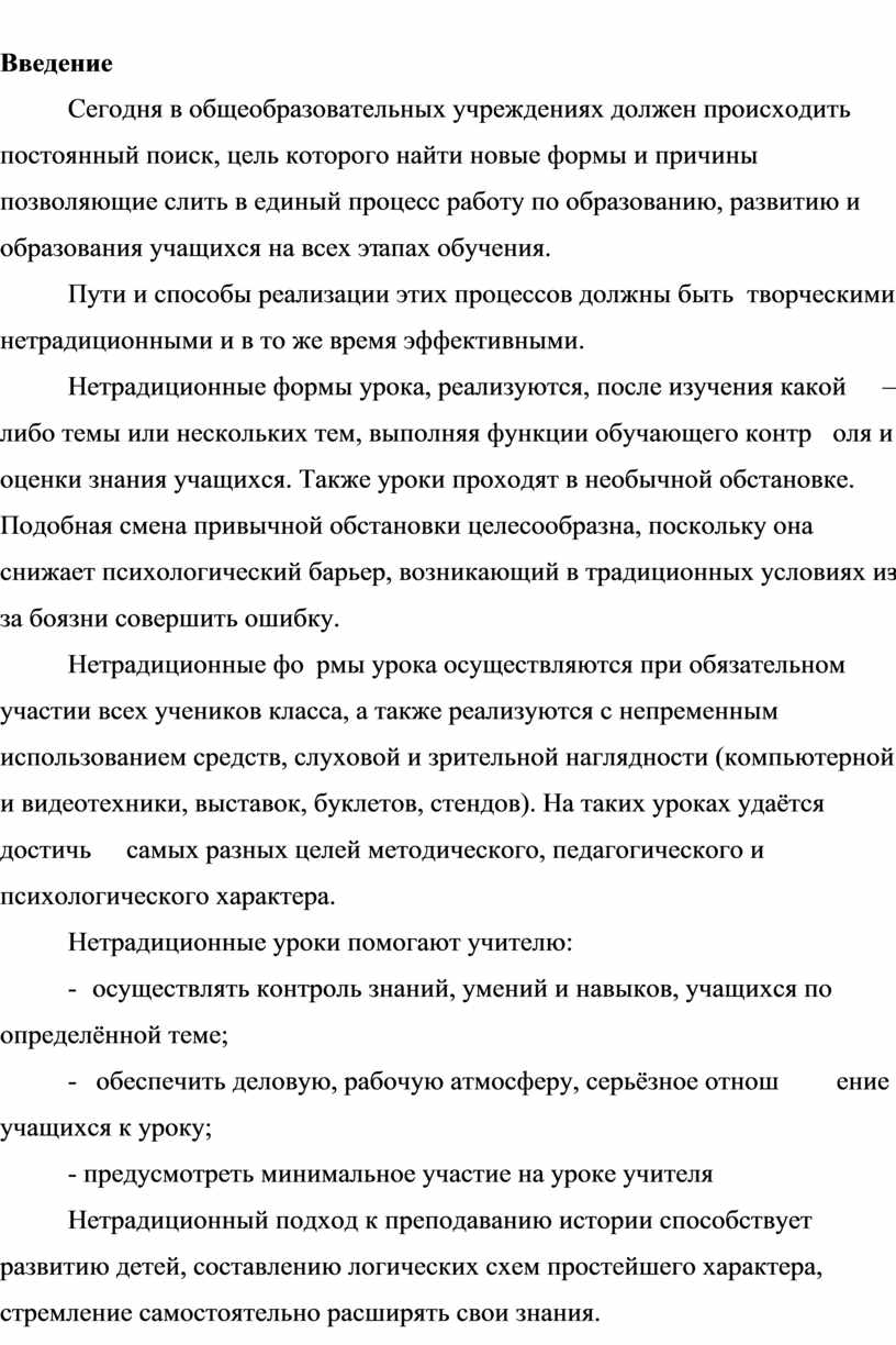 Анализ методической литературы показывает, что понятие «нетрадиционная форма урока», не имеет чёткого определения, остаётся крайне расплывчатым.
