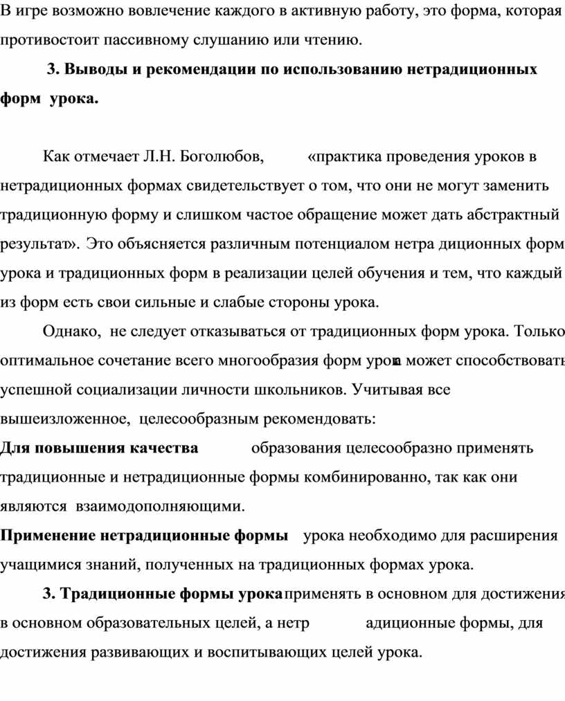 3. Выводы и рекомендации по использованию нетрадиционных форм урока.