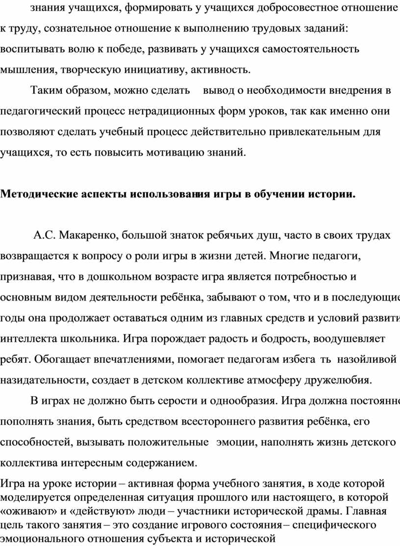 2. Методические аспекты использования игры в обучении истории.