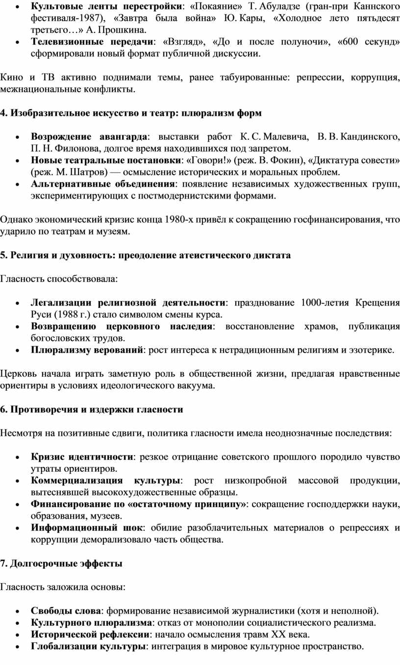 и духовная жизнь периода перестройки: политика гласности в СССР»
