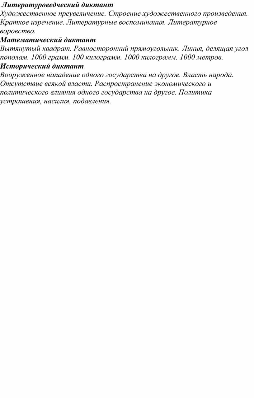 Задание. "Предметные" (терминологические) диктанты. Запишите одним словом диктуемые словосочетания.