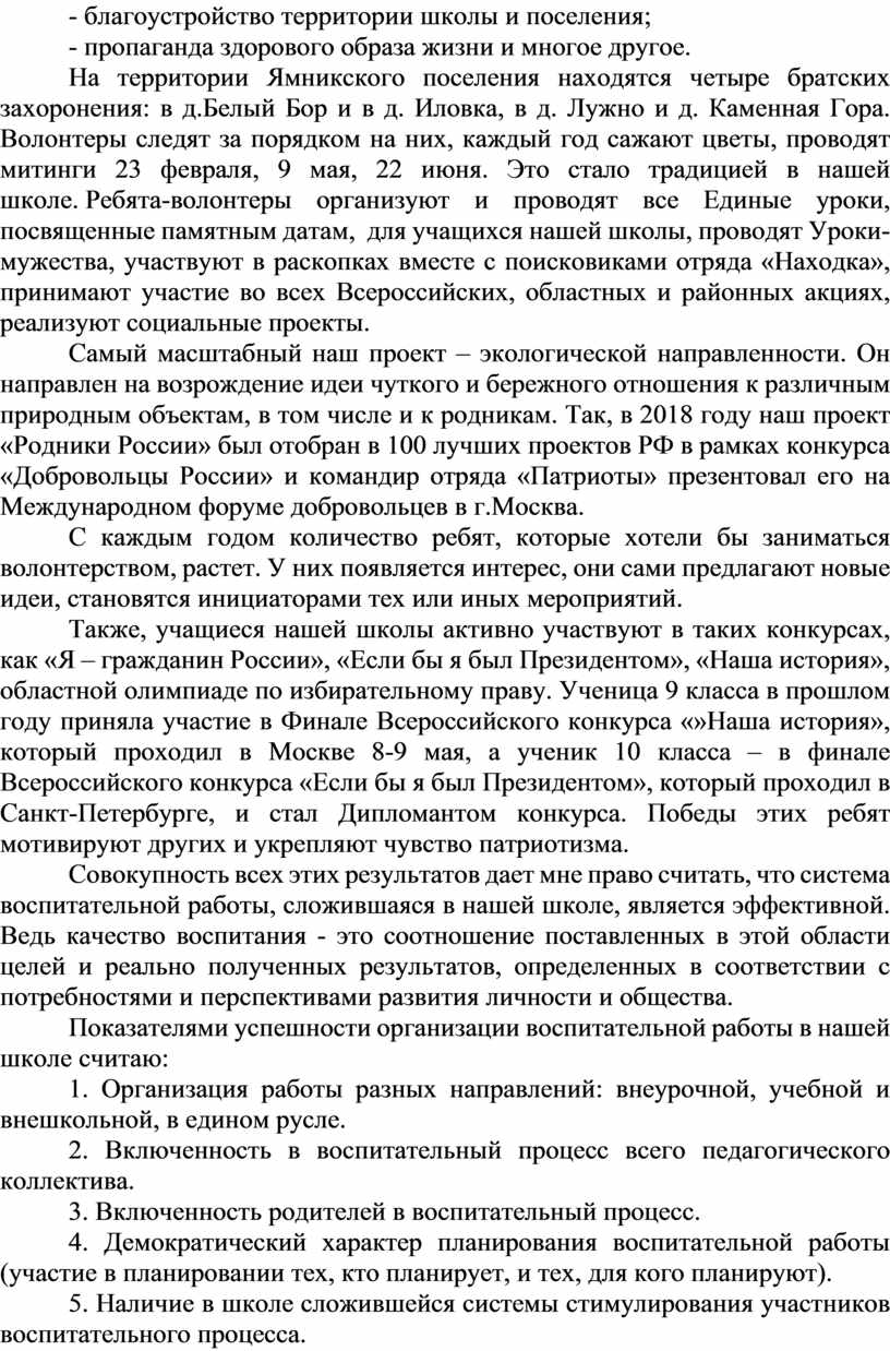 На территории Ямникского поселения находятся четыре братских захоронения: в д.Белый Бор и в д. Иловка, в д. Лужно и д. Каменная Гора. Волонтеры следят за порядком на них, каждый год сажают цветы, проводят митинги 23 февраля, 9 мая, 22 июня. Это стало традицией в нашей школе. Ребята-волонтеры организуют и проводят все Единые уроки, посвященные памятным датам, для учащихся нашей школы, проводят Уроки-мужества, участвуют в раскопках вместе с поисковиками отряда «Находка», принимают участие во всех Всероссийских, областных и районных акциях, реализуют социальные проекты.