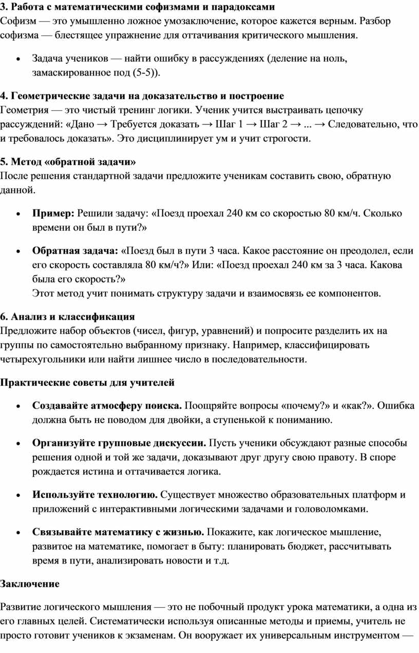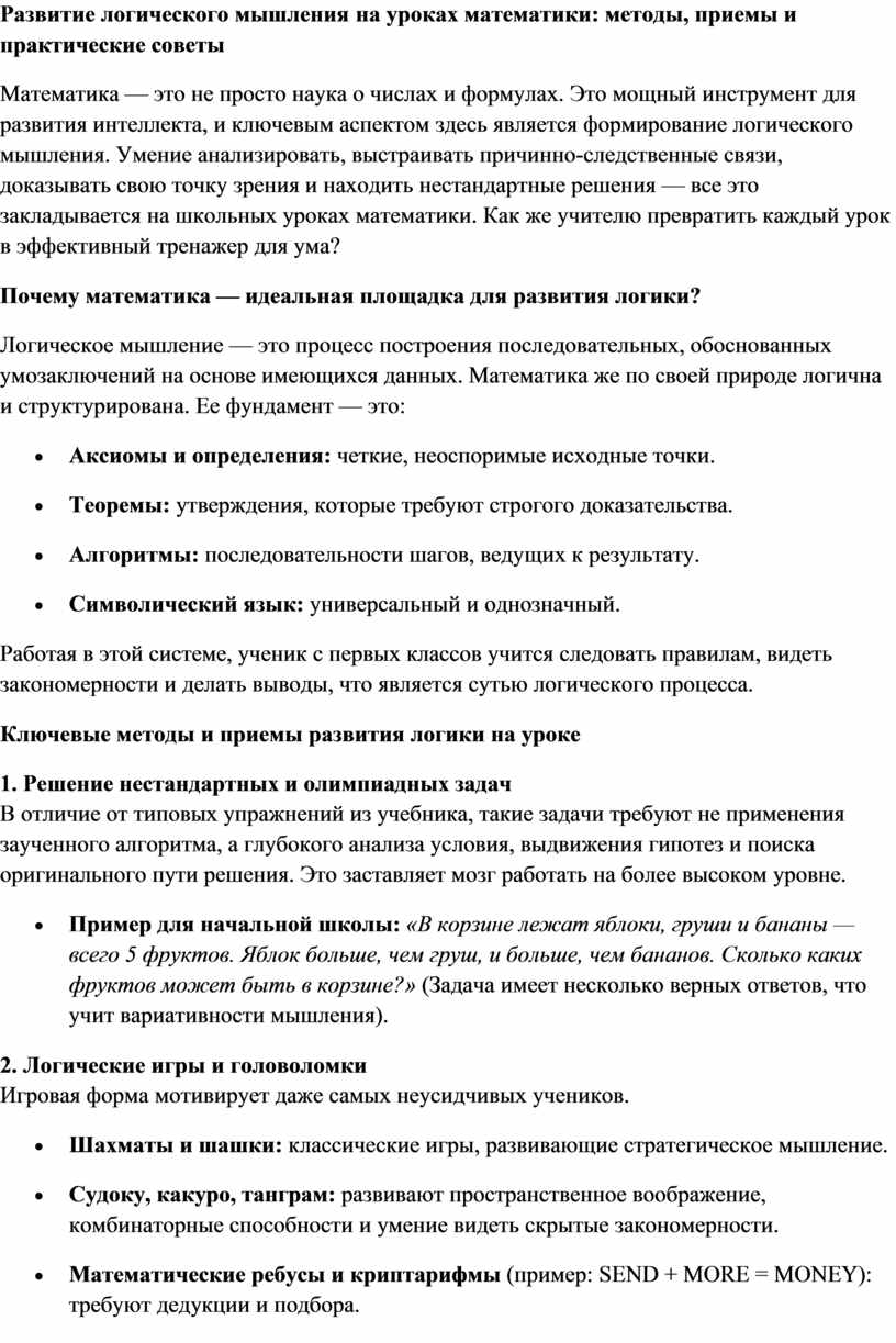 Развитие логического мышления на уроках математики: методы, приемы и практические советы