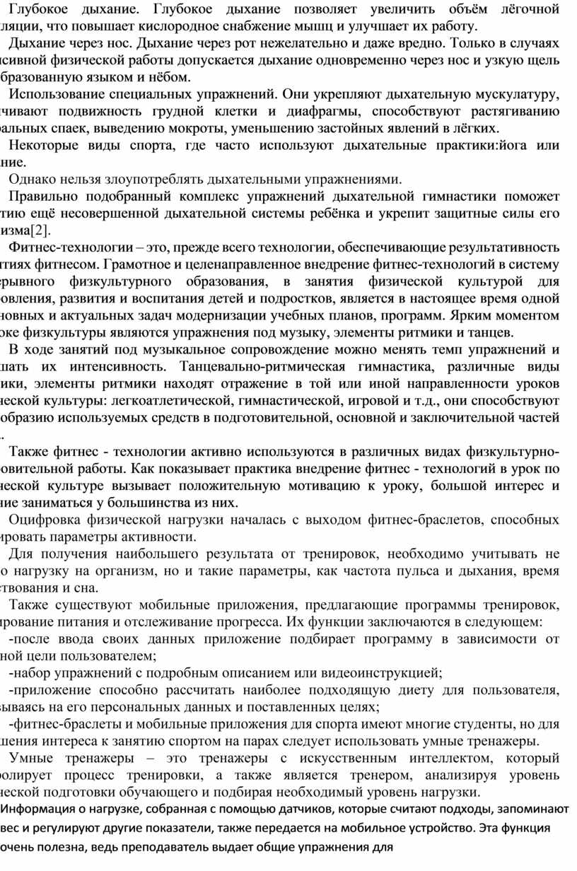 В статье рассматриваются: дыхательные технологии, фитнес-технологии, технологию портфолио.