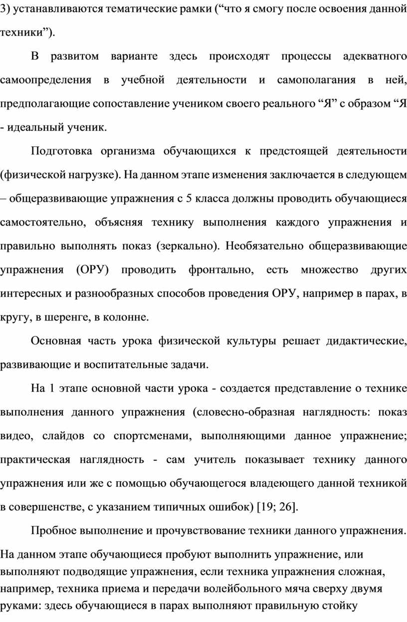 На 1 эт ап е ос но вн ой ча ст и ур ок а - со зд ае тс я пр ед ст ав ле ни е о те хн ик е вы по лн ен ия да нн ог о уп ра жн ен ия (сл ов ес но -об ра зн ая на гл яд но ст ь: по ка з ви де о, сл ай до в со сп ор тс ме на ми , вы по лн яю щи ми да нн ое уп ра жн ен ие ; пр ак ти че ск ая на гл яд но ст ь - са м уч ит ел ь по ка зы ва ет те хн ик у да нн ог о уп ра жн ен ия ил и же с по мо щь ю об уч аю ще го ся вл ад ею ще го да нн ой те хн ик ой в со ве рш ен ст ве , с ук аз ан ие м ти пи чн ых ош иб ок ) [19; 26].