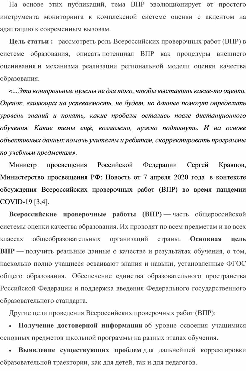 ü Статья "Эффективность ВПР в условиях цифровой трансформации образования" в журнале "Педагогика" (2021 год): Авторы (Иванов А.В. и др.) изучили влияние ВПР на онлайн-обучение во время пандемии COVID-19.