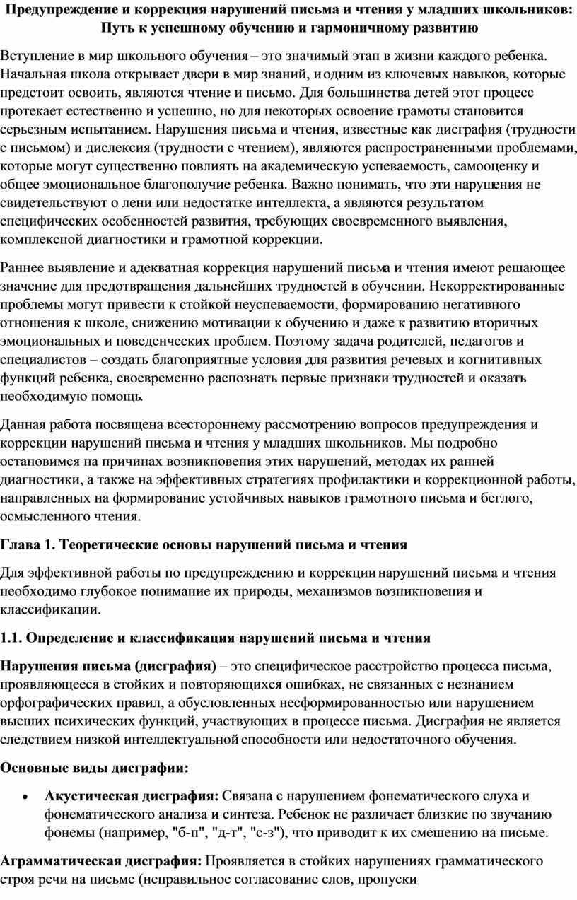 и коррекция нарушений письма и чтения у младших школьников: Путь к успешному