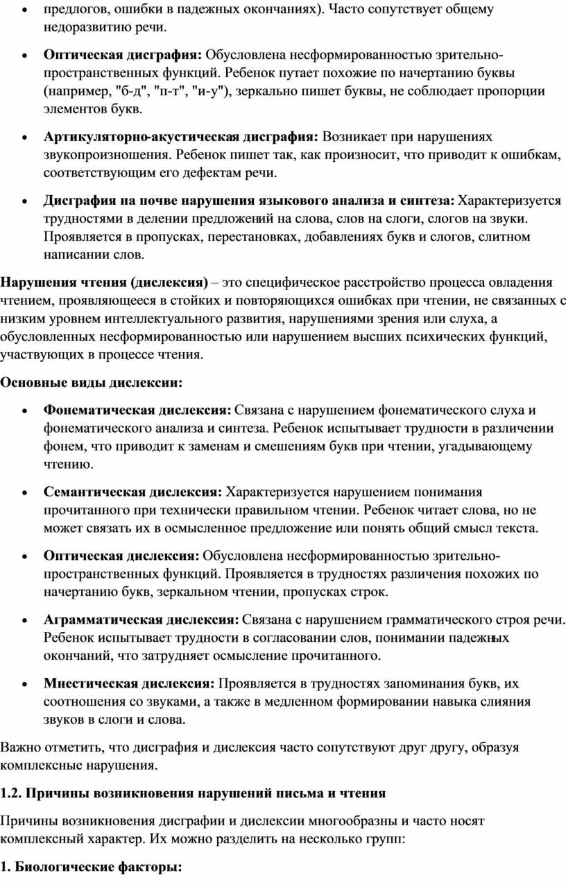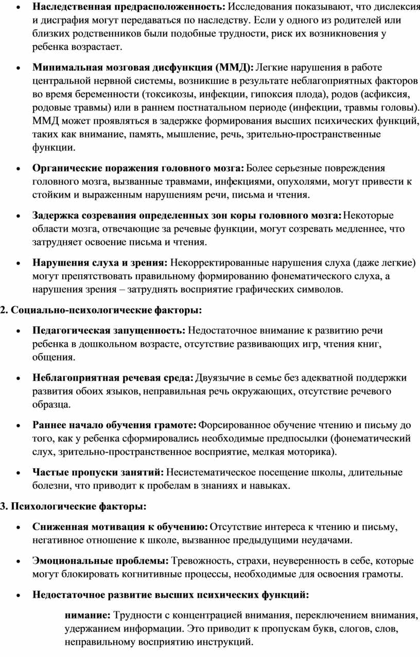 Причины возникновения дисграфии и дислексии