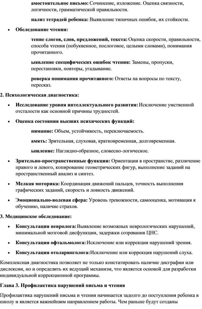 диагностики и комплексной коррекции. Они обусловлены несформированностью высших