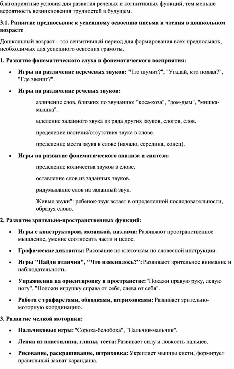 условия для развития речевых и когнитивных функций ребенка, своевременно
