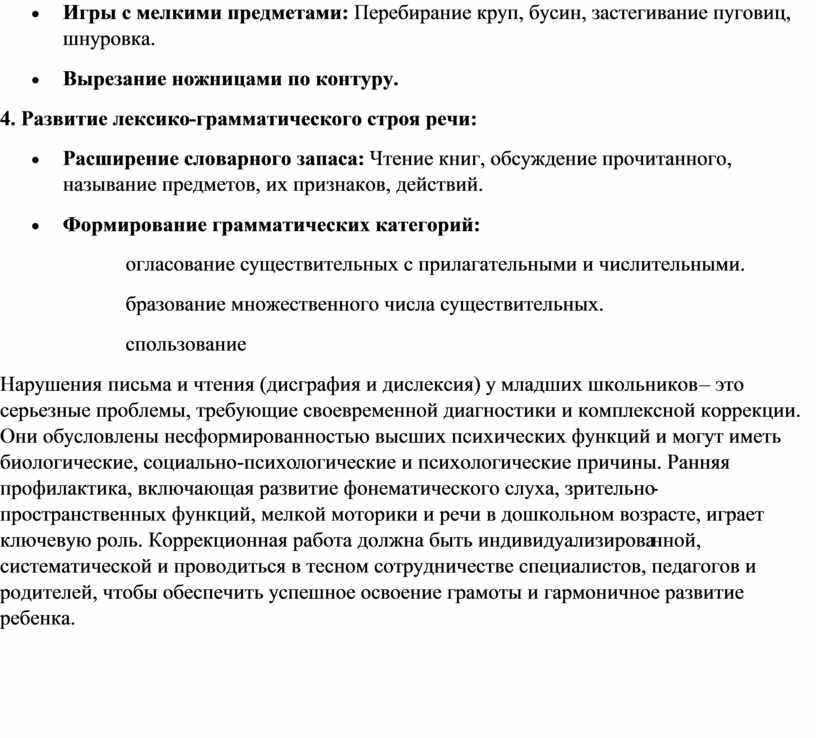 речи в дошкольном возрасте, играет ключевую роль. Коррекционная работа должна