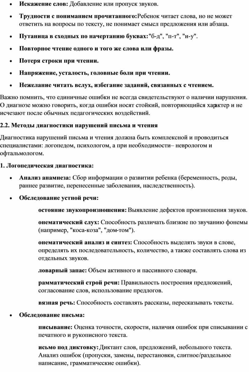Нарушения чтения (дислексия)