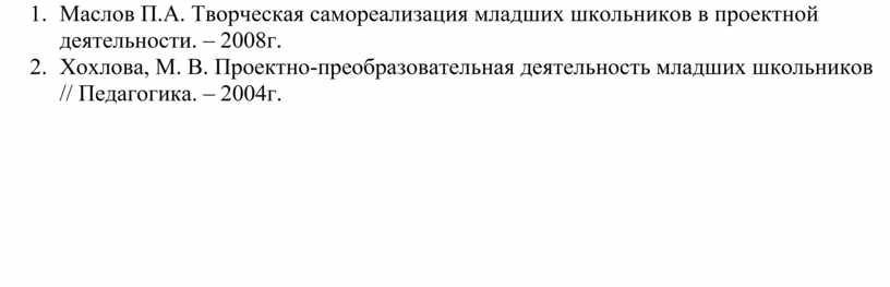 8. Маслов П.А. Творческая самореализация младших школьников в проектной деятельности. – 2008г.