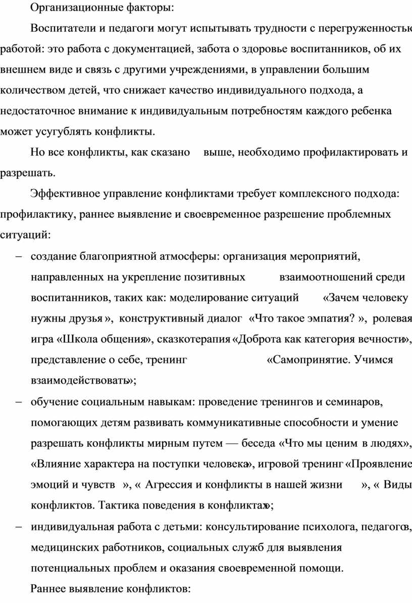 Эффективное управление конфликтами требует комплексного подхода: профилактику, раннее выявление и своевременное разрешение проблемных ситуаций: