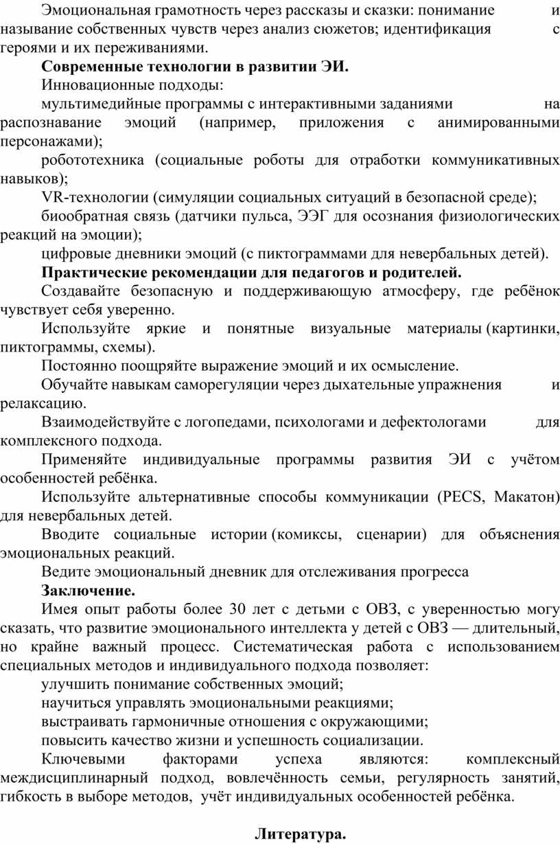 2. Методические рекомендации по развитию эмоциональной компетентности у детей дошкольного возраста с ОВЗ / Министерство образования РФ. — 2019-.С. 3, 10-12