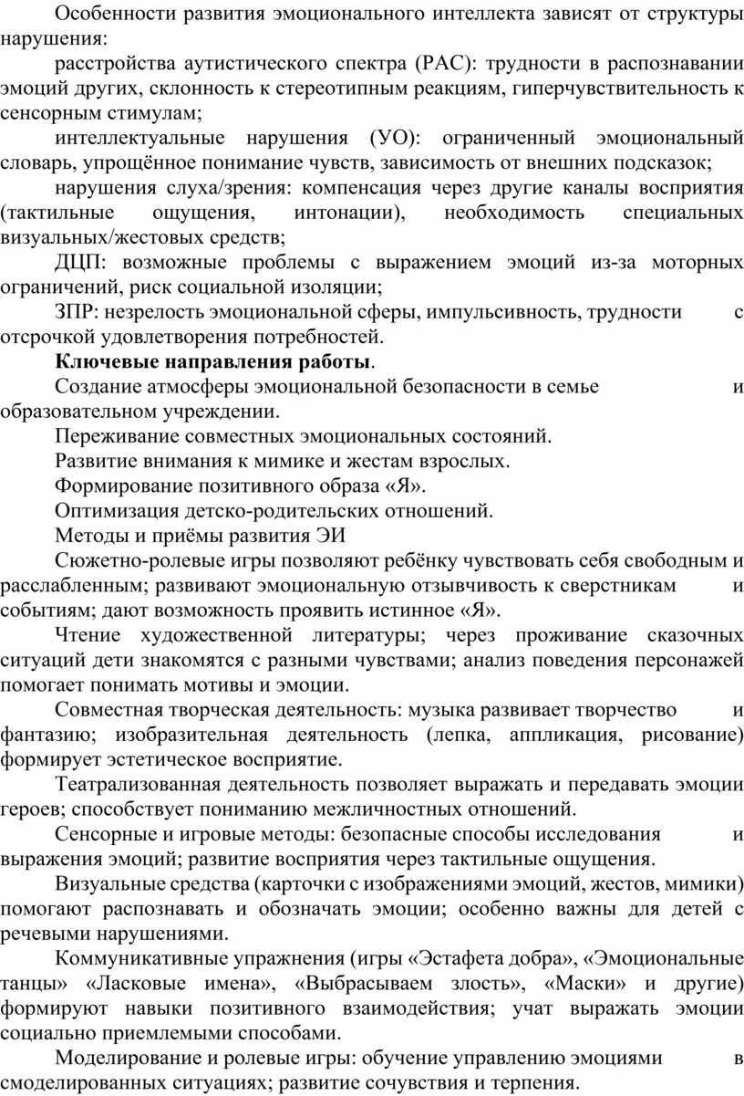 Развитие ЭИ у детей с ОВЗ — важный компонент их социализации, адаптации и интеграции в общество.