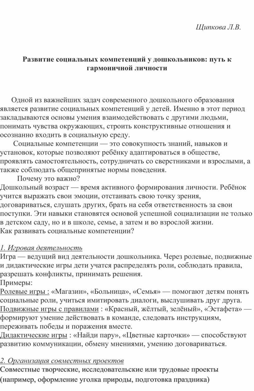 Развитие социальных компетенций у дошкольников: путь к гармоничной личности