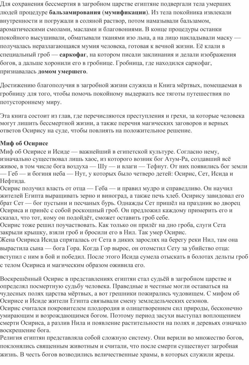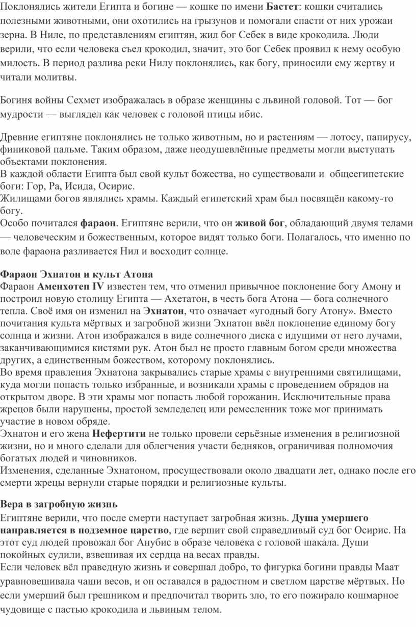 Статья: «Религия древних египтян».