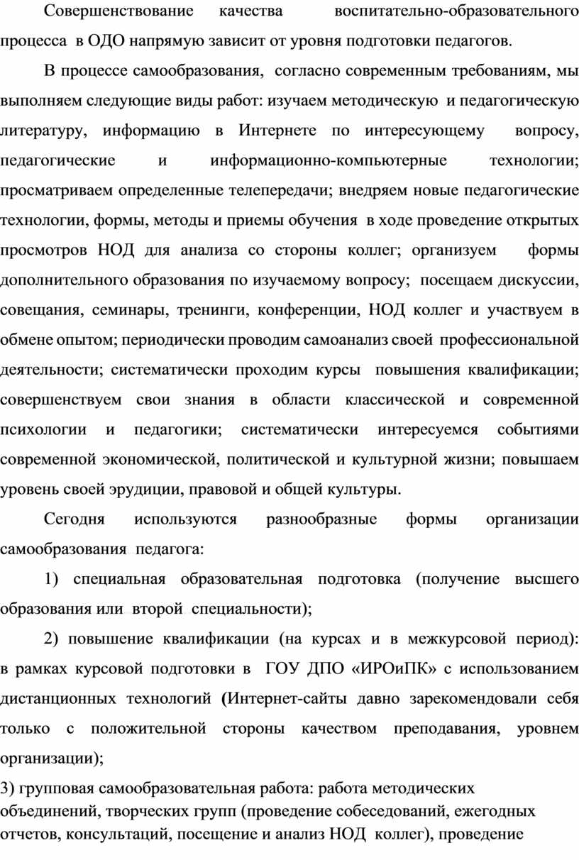 Совершенствование качества воспитательно-образовательного процесса в ОДО напрямую зависит от уровня подготовки педагогов.